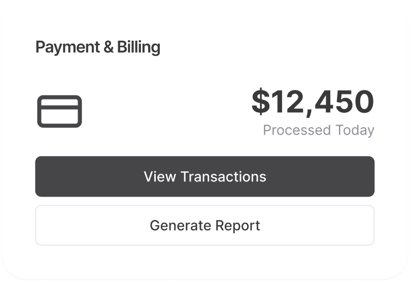 Allow for smooth end-to-end tracking of patient financial journeys with integrated payment history views, real-time outstanding payment warnings, and simple billing reconciliation