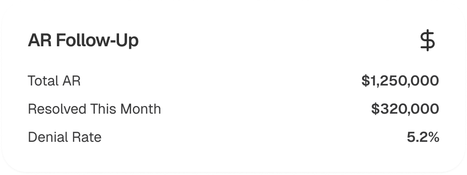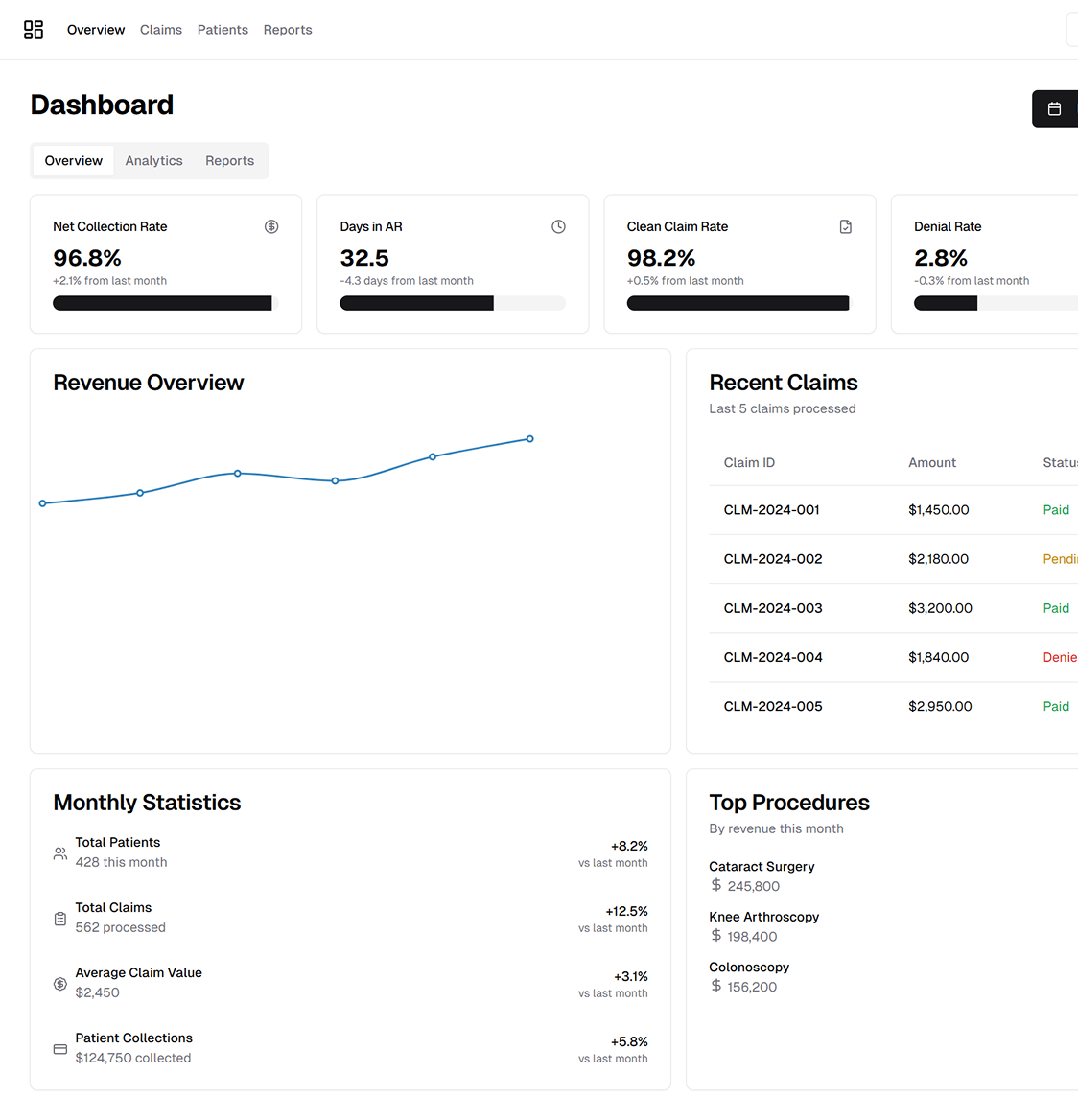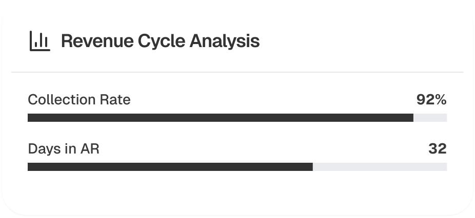 We begin by examining critical metrics such as lag days, clean claim rates, and denial frequency. Through real‐time dashboards, we keep you informed of any fluctuations that may affect your revenue. These insights drive our front‐end improvements and help maintain optimal financial performance
