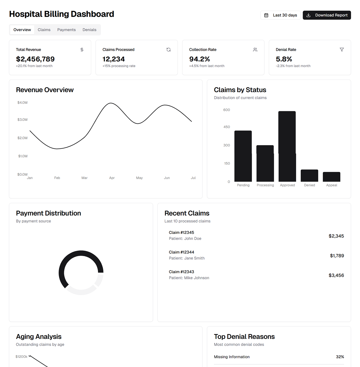Our hospital billing operations leverage modern EHR integrations, HL7 interfaces, and robust data‑driven analytics to minimize denials, shrink AR, and improve overall revenue cycle outcomes—while staying firmly within HIPAA and data security guidelines