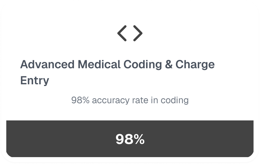 • Insurance Verification • Medical Coding • Charge Entry • Payment Posting • Rejection Management • AR Follow-Up • Credit Balances