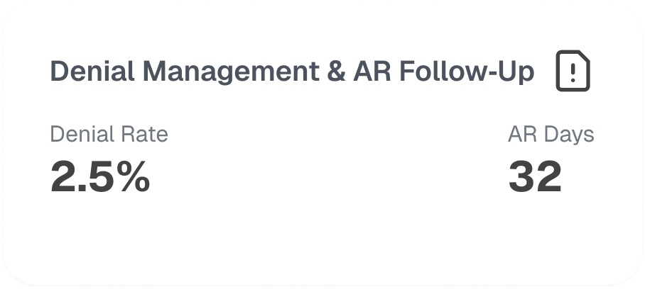 Our denial prevention teams continuously analyze payer trends, identify coding or documentation gaps, and deploy immediate solutions. Automated trackers alert staff to pending AR accounts, enabling swift appeals and underpayment recoupment