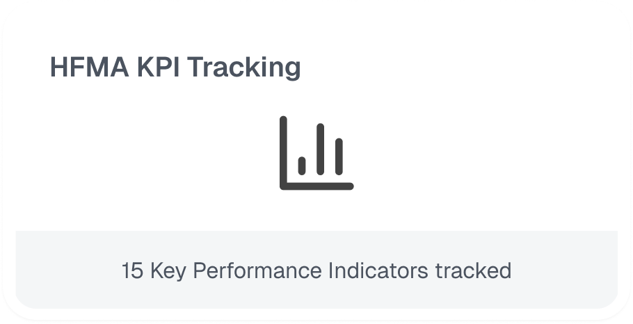 Customizable dashboards measure performance across key HFMA KPI metrics such as clean claim rate, days in AR, and net collection rate. This real‑time visibility keeps your leadership fully informed of ongoing improvements