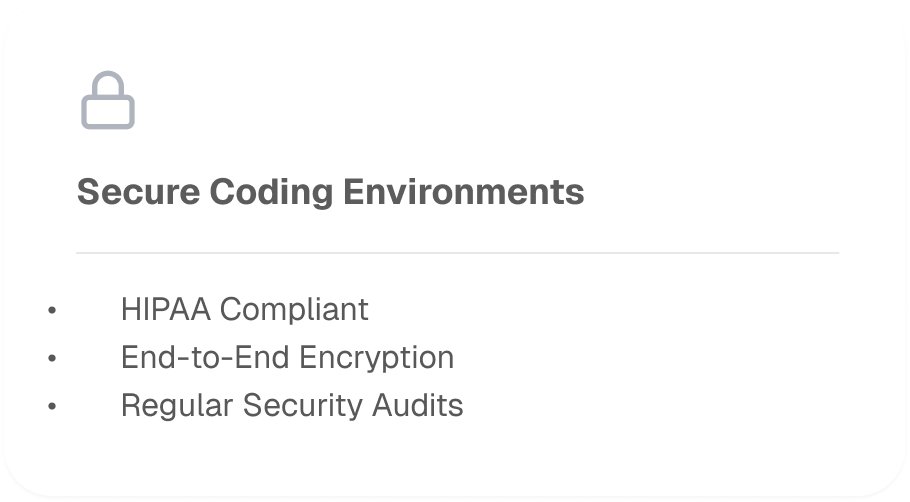 Our secure IT platforms allow remote coders to work within your system safely, maintaining data privacy and preventing unauthorized access, in compliance with HIPAA