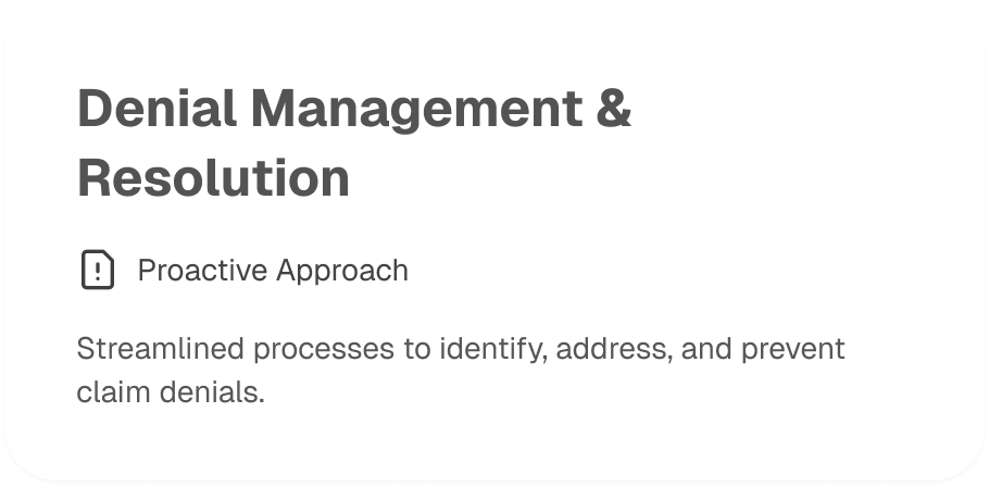 By analyzing denial trends, our experts quickly address the root causes of rejected claims, such as incorrect codes or incomplete documentation, to maximize reimbursements