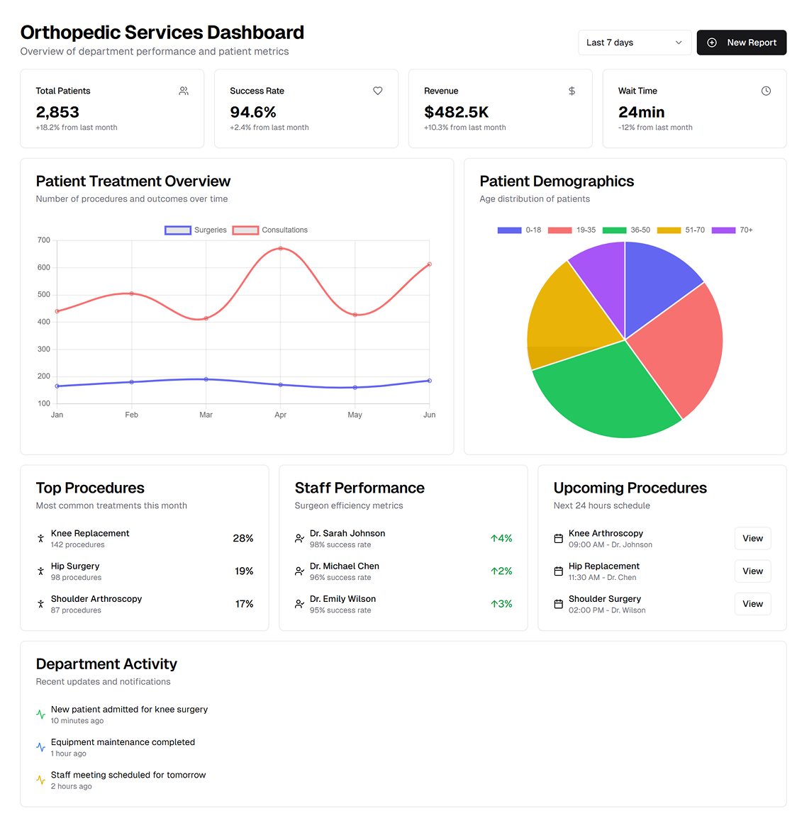 Access to on‐demand, customizable dashboards lets you monitor KPI metrics like days in AR, claim aging, and reimbursement trends. With these insights, you can quickly make informed decisions about resource allocation, contract negotiations, and practice growth