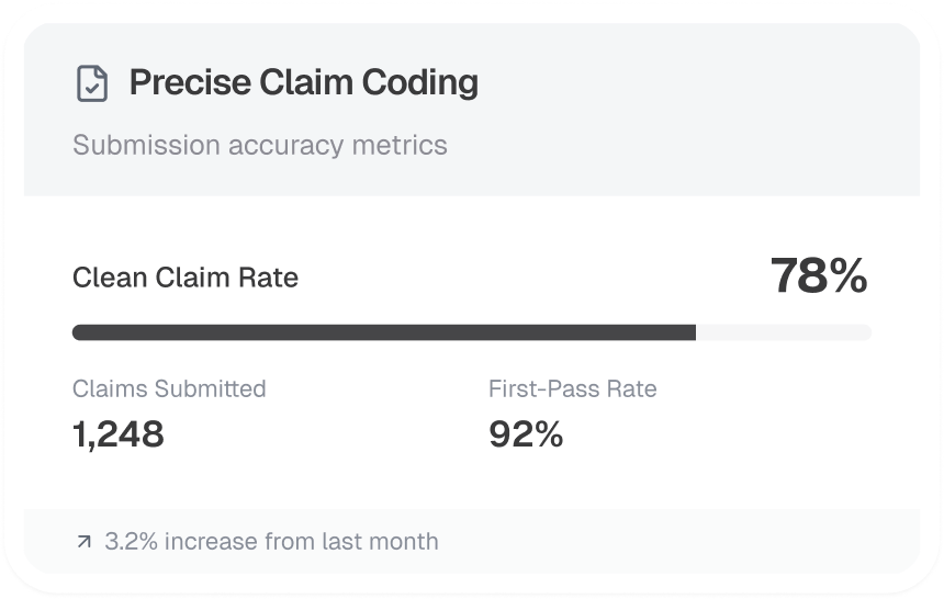 We proactively address potential billing issues before submission, significantly reducing claim denials and stabilizing your practice’s cash flow