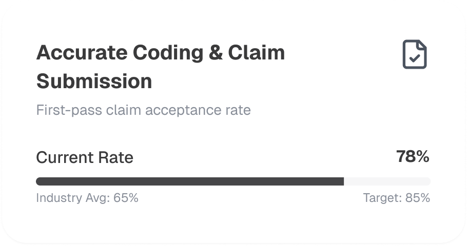 Our proactive approach identifies potential issues before claims submission, significantly reducing denial rates and improving cash flow stability