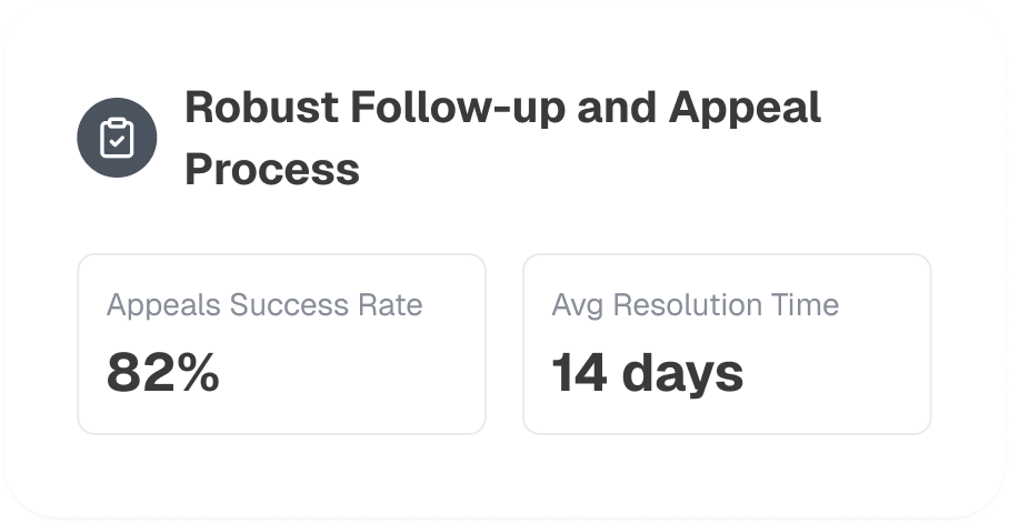 We aggressively manage claim follow-ups and appeals, ensuring every claim receives the necessary attention to secure full reimbursement