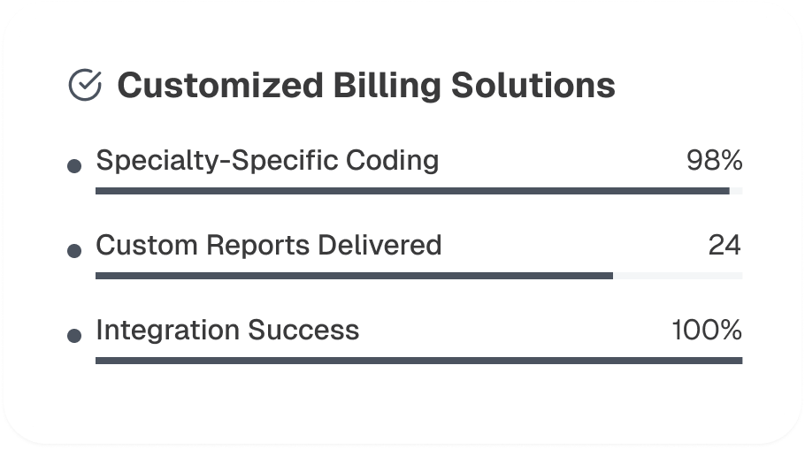 Flexible billing strategies explicitly tailored to your practice’s unique needs, improving operational efficiency and profitability
