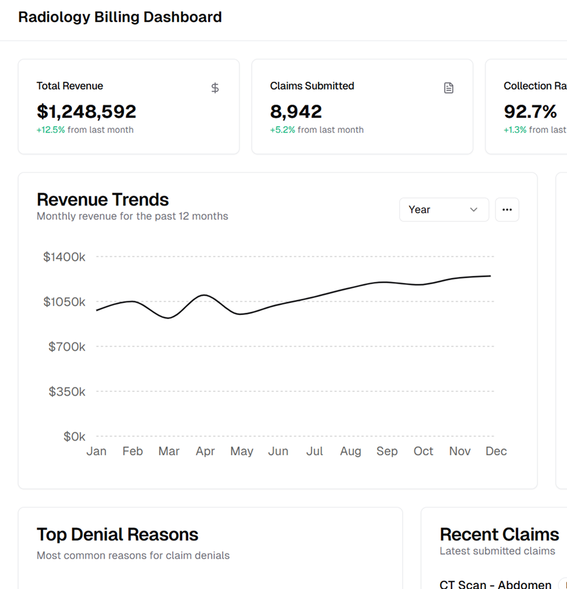 Our specialized billing solutions simplify radiology billing processes, enhance revenue cycle efficiency, and reduce administrative burdens for healthcare providers